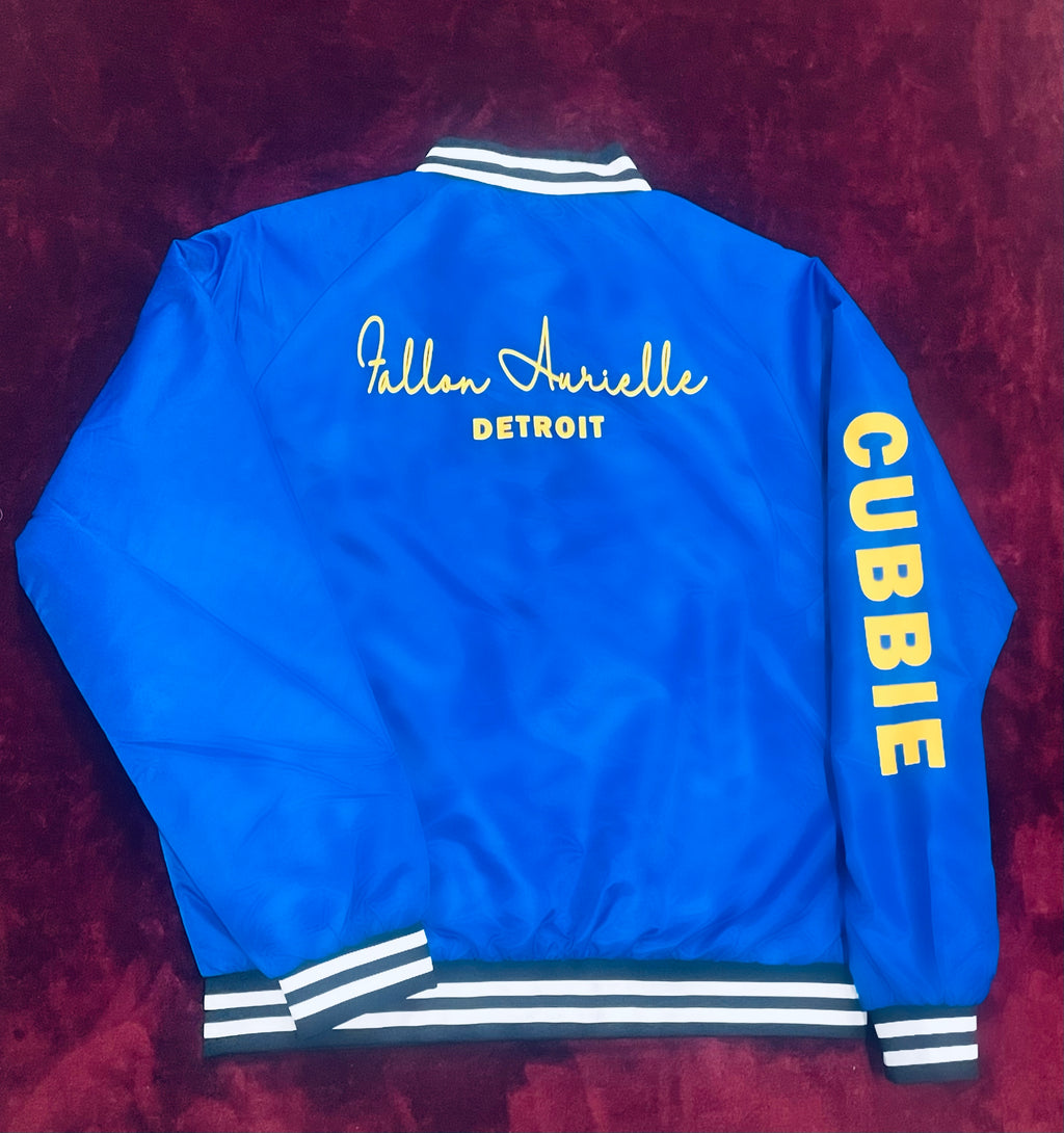 Fallon Aurielle Unisex Signature Detroit Rep Yo Set & Name Members Only Jacket (Navy Blue, White & Neon Orange)