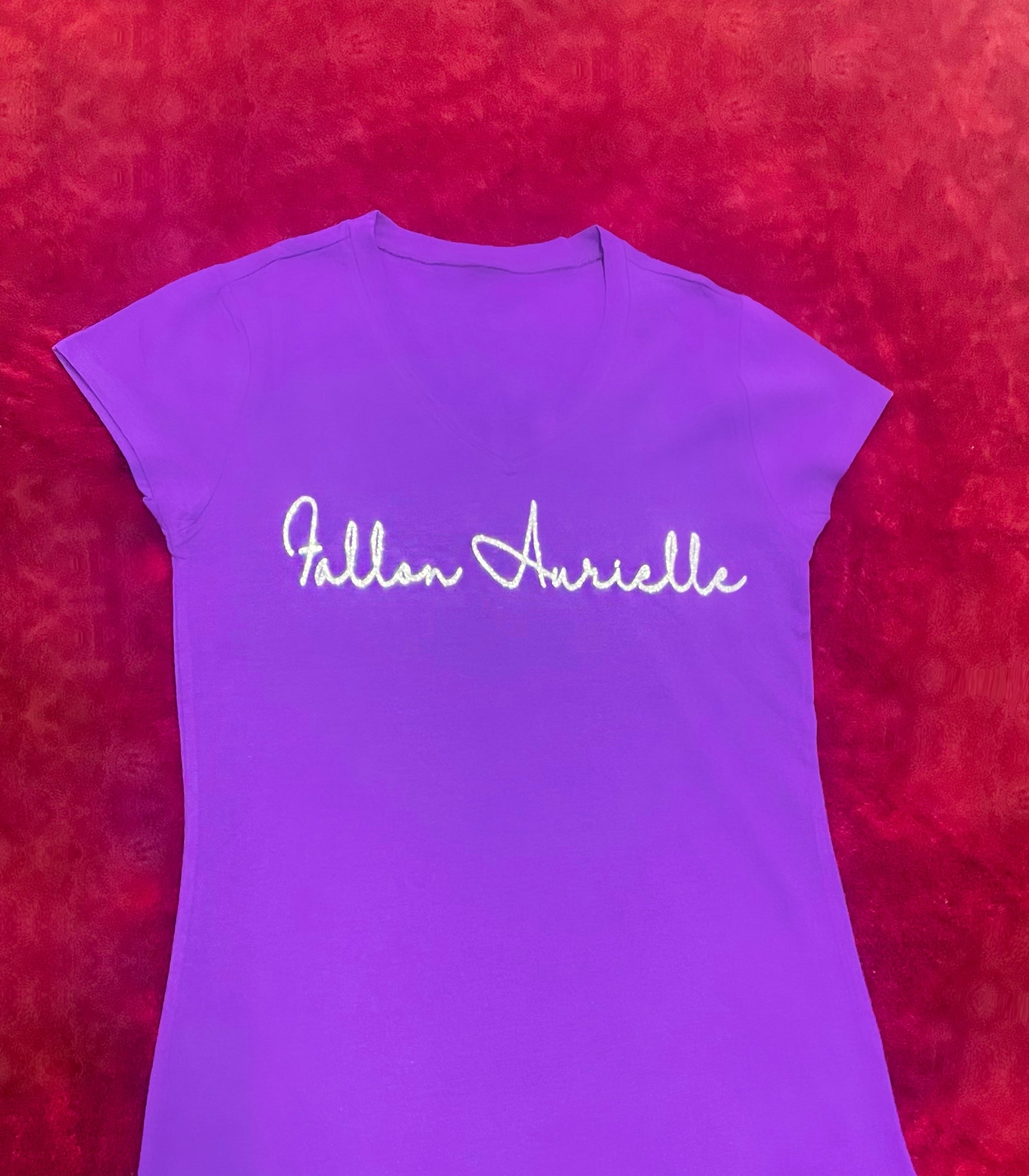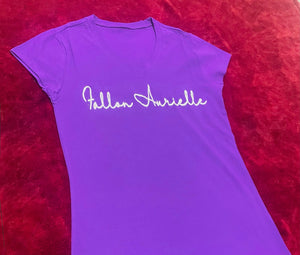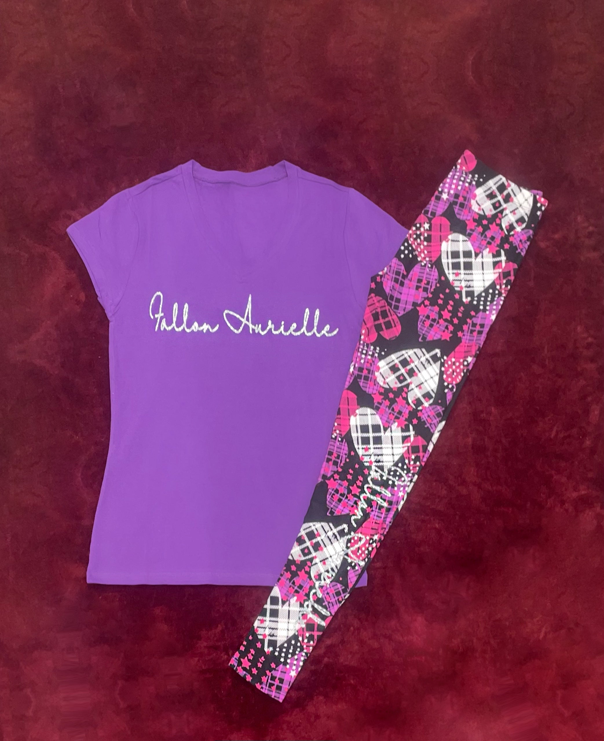 The “Fallon Aurielle Signature Classic V-Neck Leggings Set” is for the around the way guy or girl who loves to be stylish, unique and super fly. We love the versatility in these pieces. You can wear killer high heels, boots, booties and sneakers. The options are absolutely endless. Silver cursive name detail in center of t-shirt and down right leg on leggings. Super stretchy & comfortable fabric. Can be worn casually or as a great workout look. Fits curvy weight size 100-200LB. View size chart for details.